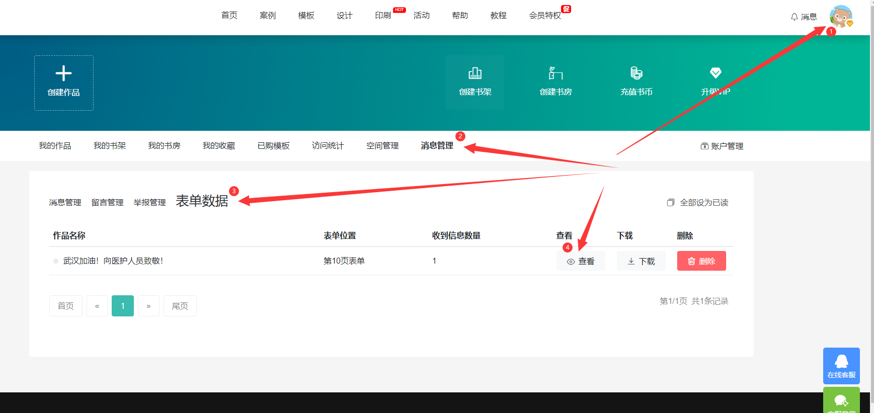 2.有四个创建作品的窗口,空白页面、套用模板、上传PDF、上传图片