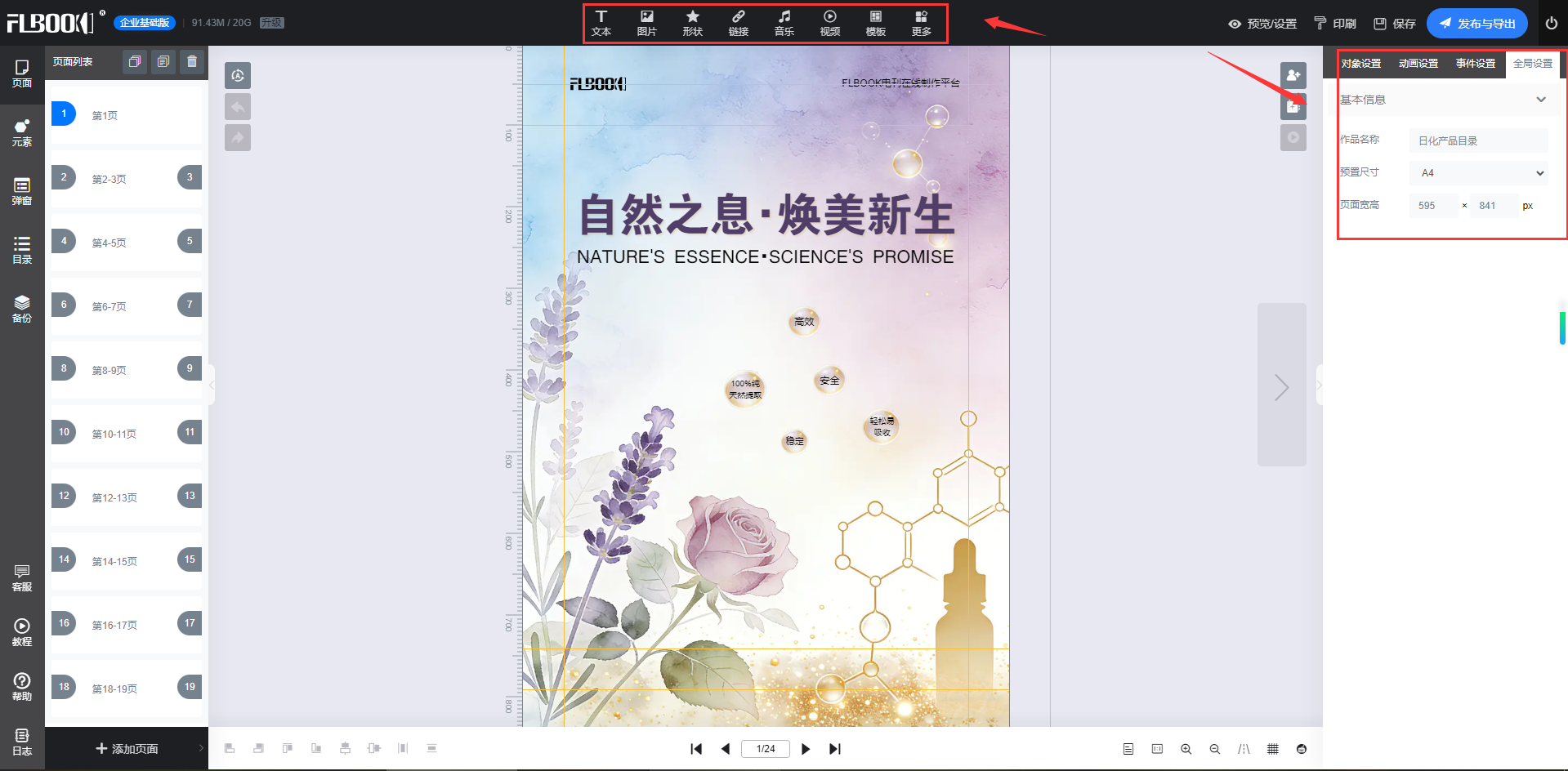 点击顶部「预览」,用手机扫码查看移动端效果(重点检查翻页流畅度、文字清晰度)。发现问题直接返回修改,支持实时保存。