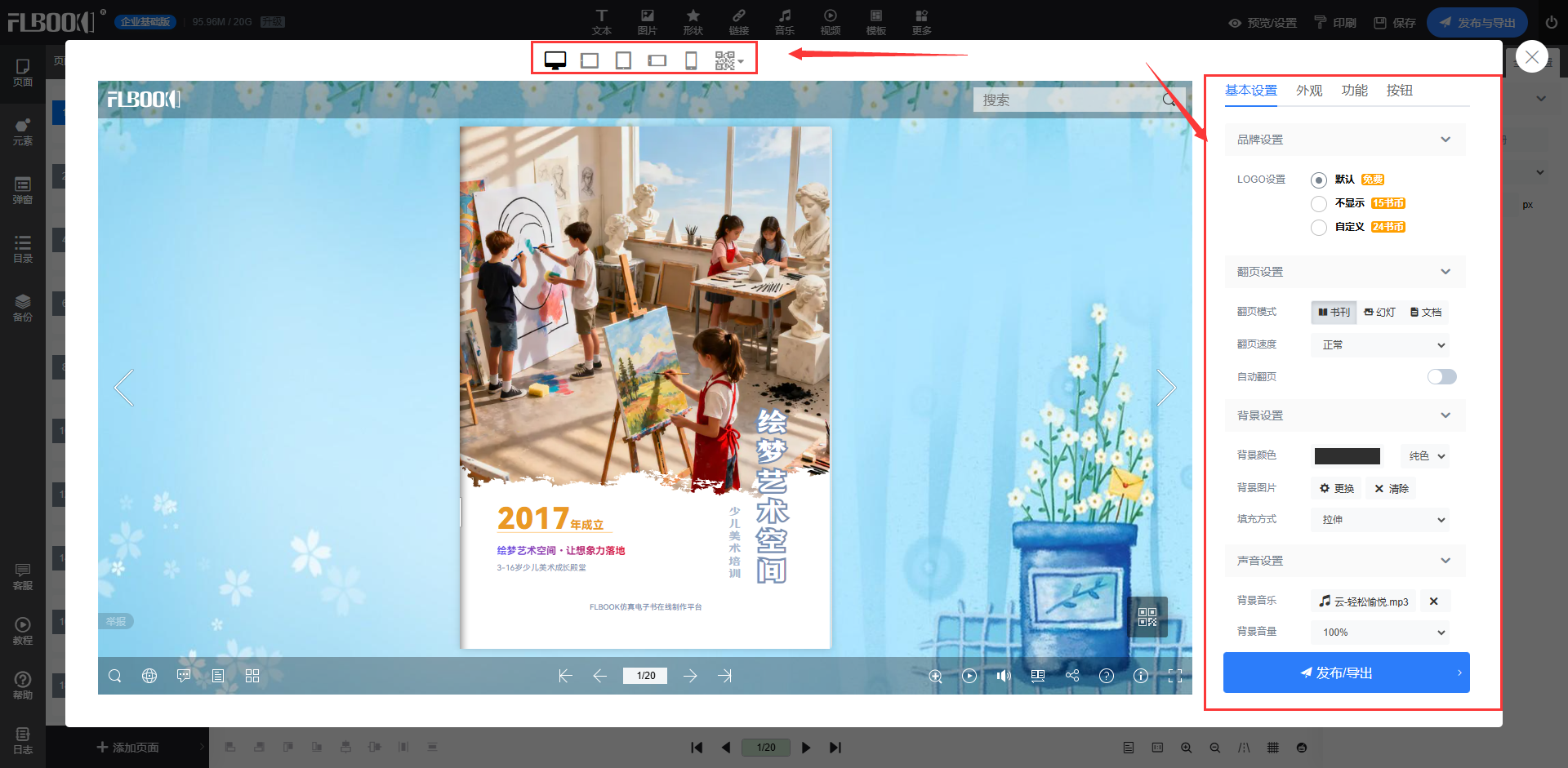 6.如果满意,就可以点击“发布”或“分享”。FLBOOK会生成一个链接或二维码,方便你通过微信、邮箱或网站直接分享给潜在新生。