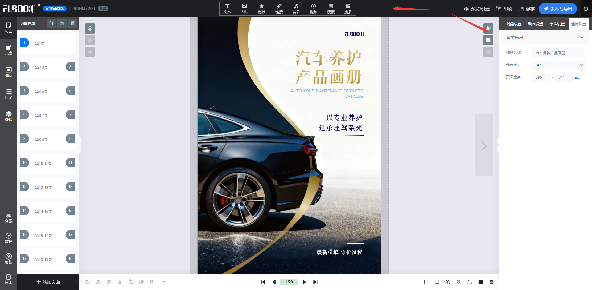 2.上传素材:点击“上传”按钮,将准备好的图片、视频、音频等素材上传到FLBOOK,支持JPG、PNG、视频等多种格式。上传后可通过拖拽操作调整素材的位置和大小。