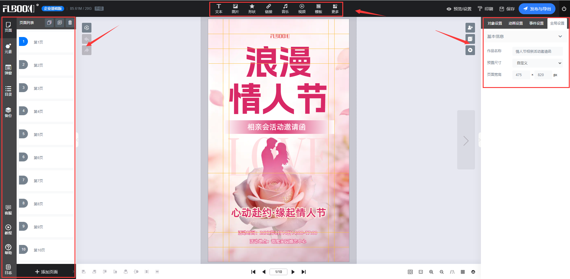 FLBOOK里有不少免费模板,选择一个适合你内容风格的。模板布局已经设计好了,省了很多排版时间。